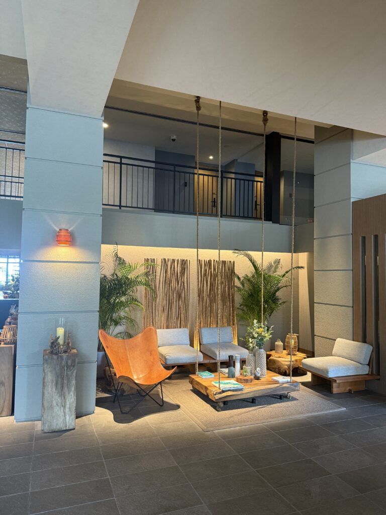 イン。ロビーはリゾートとエスニックがほどよく混ざったしつらえ。
