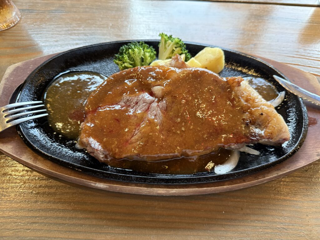 焼き目の香り、肉の弾力、ナイフを入れた瞬間にじゅわっと広がる肉汁。旅の二日目は、しっかりタンパク質で締めるのがチャジー流。🌃🥩